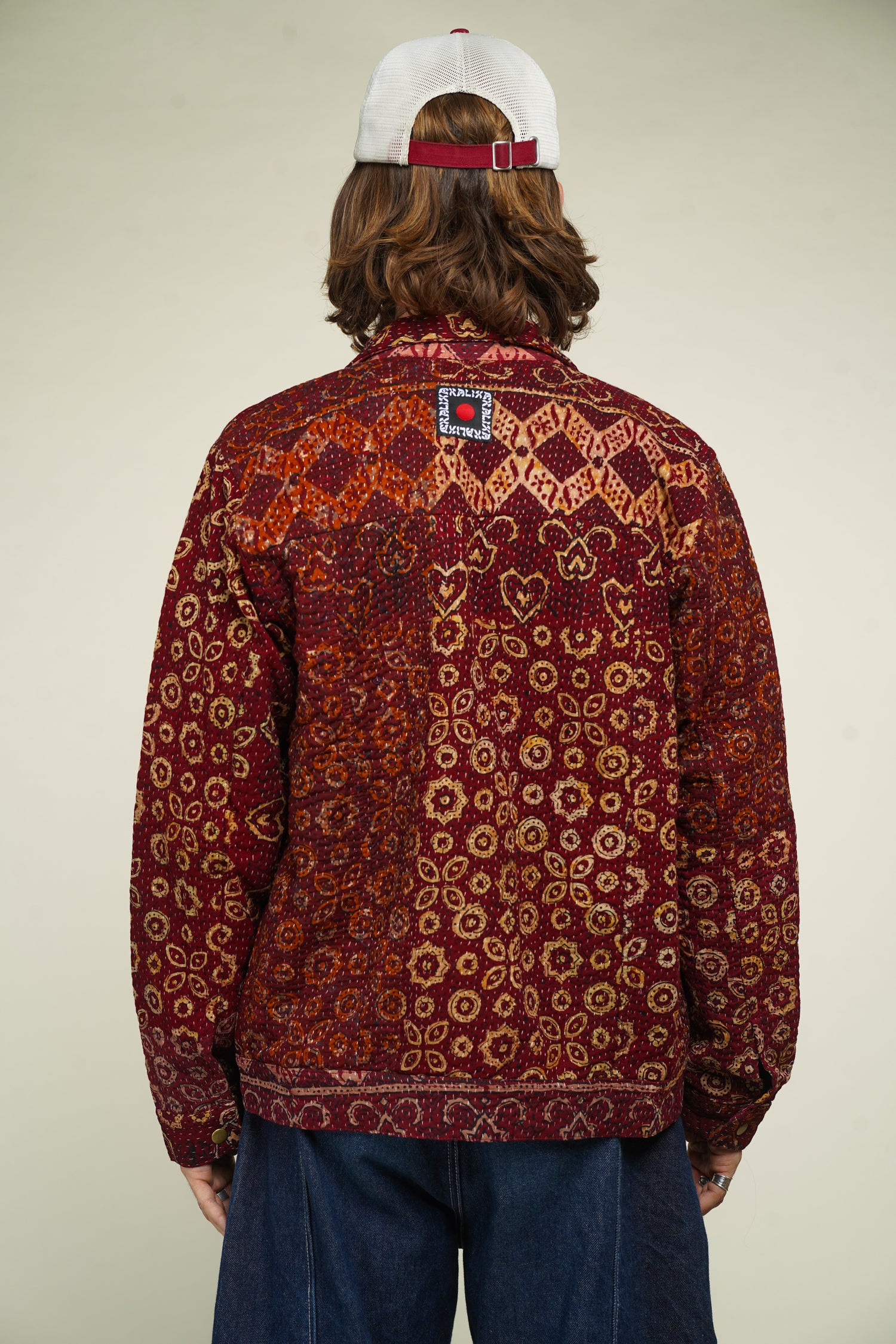 Denim Jacket en Kantha Vintage – Blockprint Ajrakh du Rajasthan
