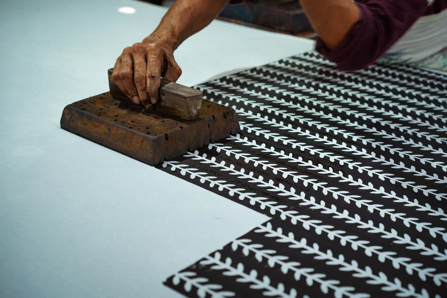 Nous travaillons à partir de tissus vintage ou upcyclés, et collaborons avec des artisans pour créer des matières tissées, brodées ou imprimées à la main. Chaque textile porte une mémoire, un savoir-faire, une âme.